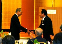 錢高一善 会長の挨拶の後、塩川前財務大臣による記念講演がありました。塩川先輩はテレビで拝見する通り、非常に親近感があり、しかしその中にも鋭い観点から政治のお話をして頂きました。質疑応答にも熱心にお答え頂き、とても面白く感じました。