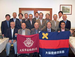 大阪早稲田倶楽部からは高野泰明会長、横山昌弘理事長はじめ8名、大阪慶應倶楽部からは錢高一善会長、呉 美憲評議員はじめ8名が参加しました。今回は初顔合わせということで少人数での開催でしたが、来年からは定期的に大人数で開催することが決まりました。