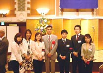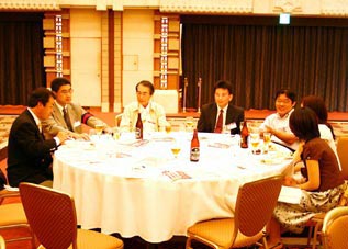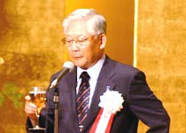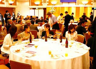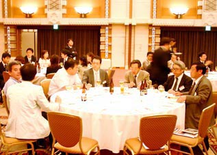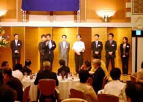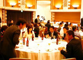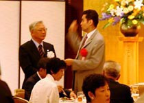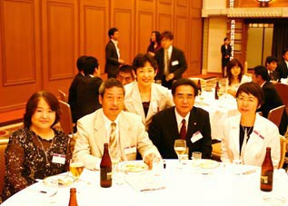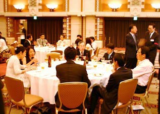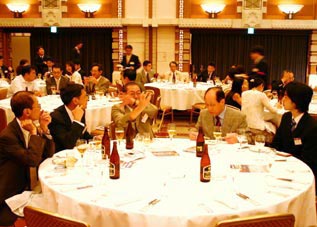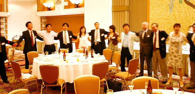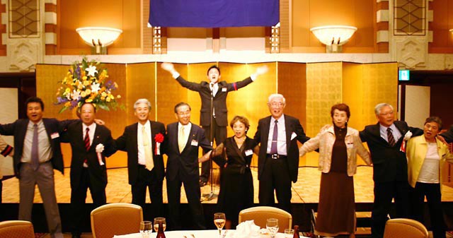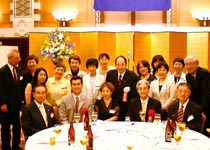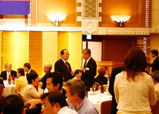 森常任理事のご挨拶で記念式典が終了した後、小倉副会長の乾杯で懇親会が始まりました。最後には参加者一同肩を組み恒例の「若き血」を大合唱。なごやかな雰囲気の中、会は終了しました。