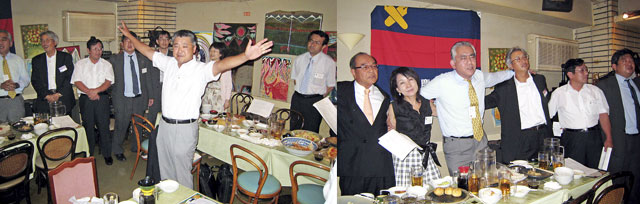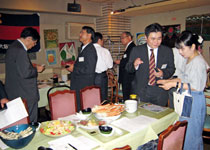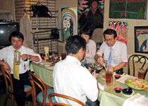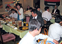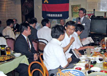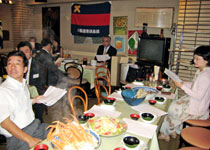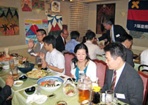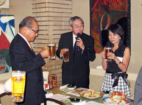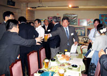 永山克彦氏(昭50商)の挨拶から始まり、名詞交換・おいしい料理・お酒で盛り上がり、初参加者13名の方のご挨拶を頂きました。初参加者の挨拶は、重田勇氏(昭34法)から始まり、お話の内容が楽しく時間を忘れて聞き入るという状況でした。今回、女性の参加が4名と最近の中年交流会の中で最高ということで、会に花を添えて頂きました。
