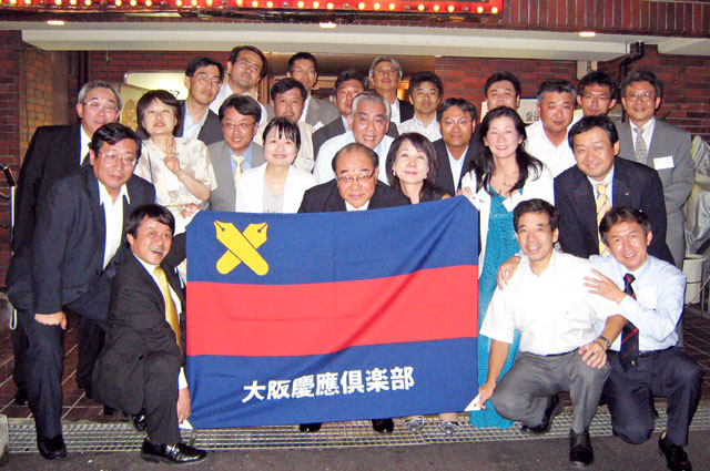 前回より吉田幸主氏(昭51法)にご提案頂いた塾歌を清水昇氏(昭58法)のすばらしいエールで合唱しました。塾旗を囲んでの記念撮影で終了となり、次回の再会を楽しみに解散しました。