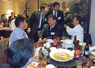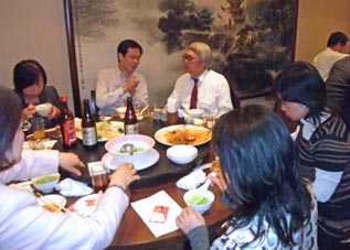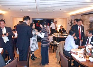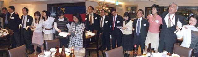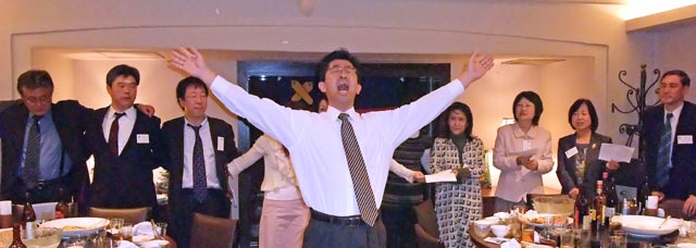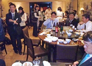 お酒と料理を囲んで歓談ののちに初参加者11名のスピーチ。