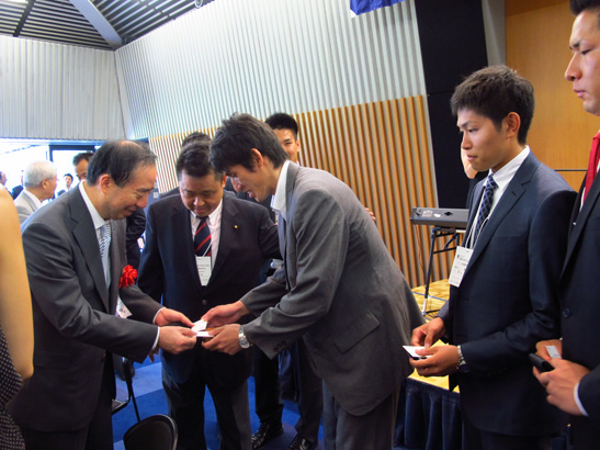最後に、海瀬亀太郎和歌山三田会会長による2013年関西合同三田会のご案内の後、竹田功勝実行委員長による挨拶があり、恒例の「若き血」大合唱で中締めとなりました。
